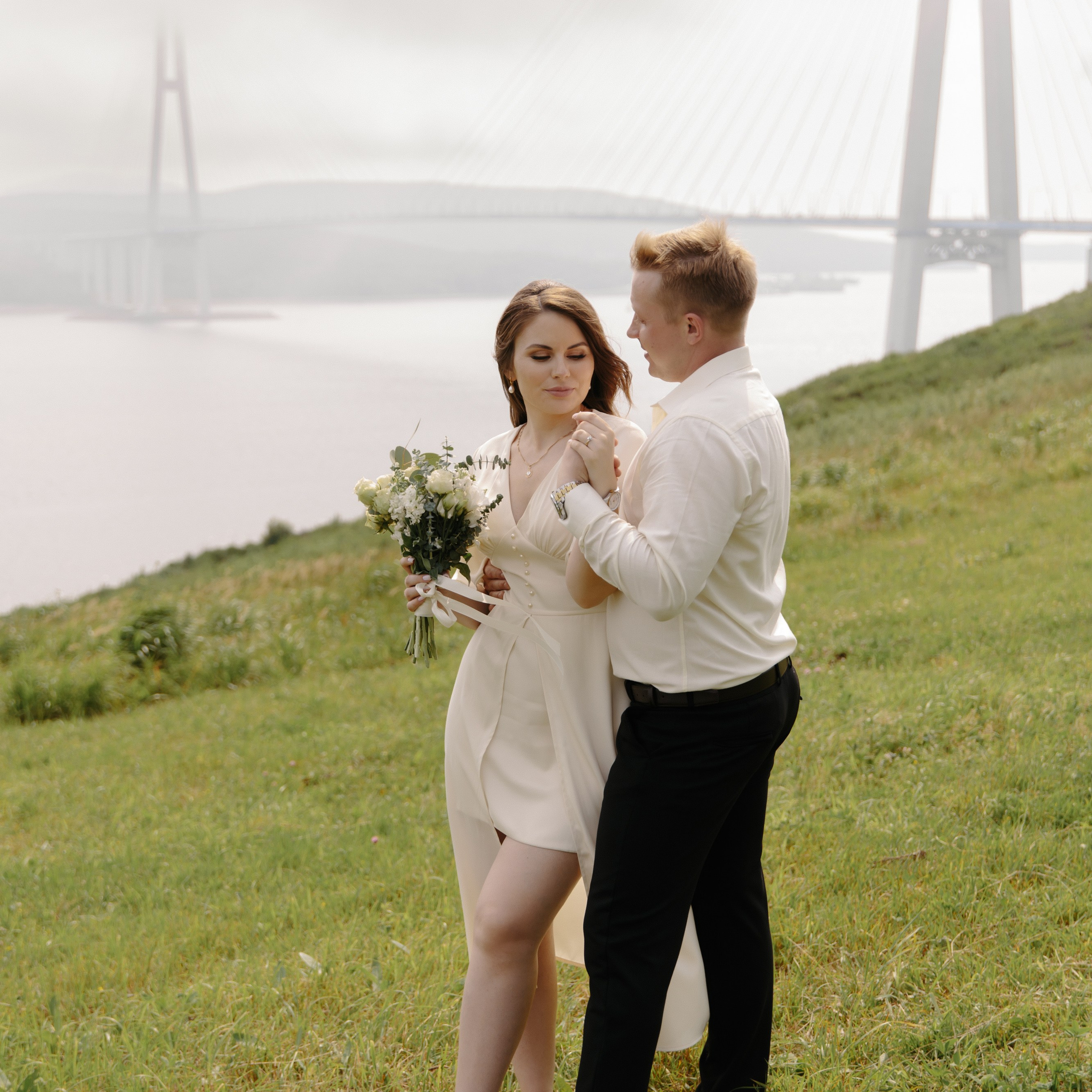 Большая часть кадров со съемок — это не про позирование, а про жизнь: взгляды, касание пальцев, взлетающие волосы от приморского ветра, искренние улыбки на ваших лицах, про то, какие вы в этот важный момент.
